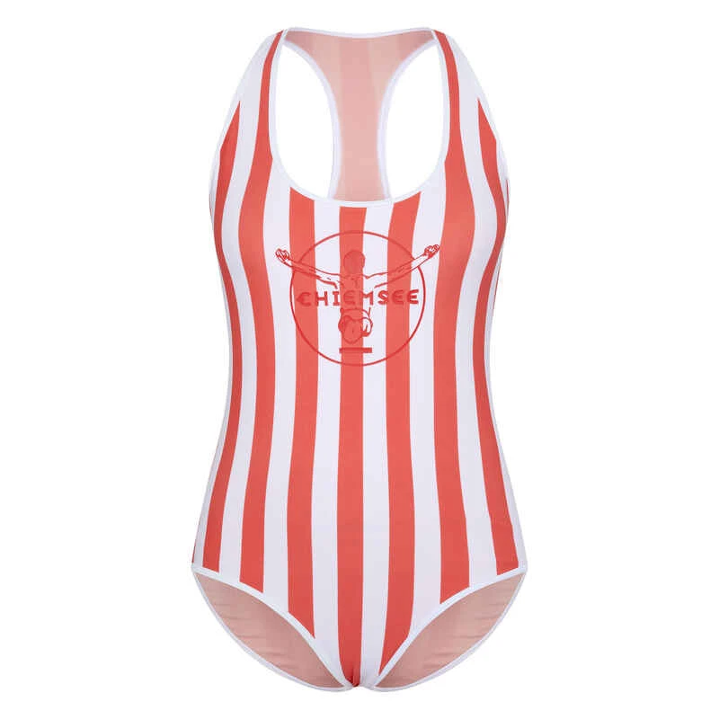 Erfolgreich meistert der attraktive Badeanzug von CHIEMSEE den Spagat zwischen Athletik und Eleganz! Hübscher Hingucker des formstarken Designs ist der trendige Rückenausschnitt. Ein großer CHIEMSEE Logo-Print auf der Brust macht das Streifen-Design perfekt. Die körperbetonte Passform des Einteilers schmeichelt in Kombination mit dem hohen Beinausschnitt der weiblichen Silhouette. Pack den Badeanzug fix in deine Badetasche und schon geht es ab an die Küste!