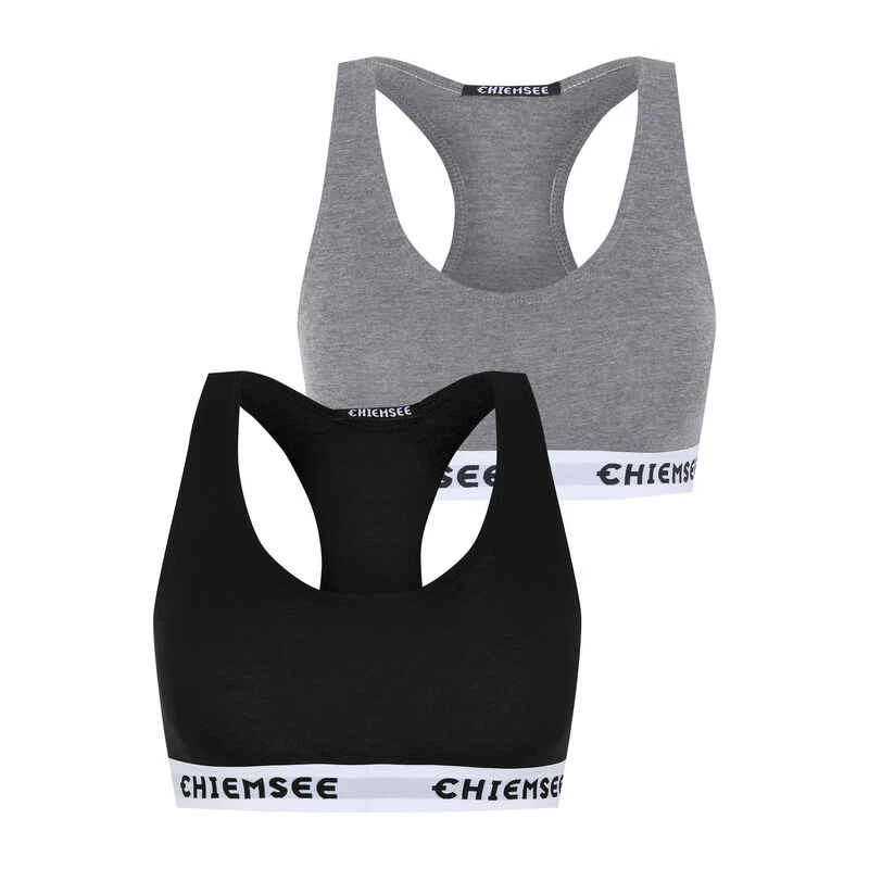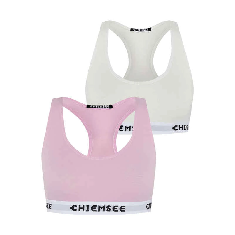Doppelt hält besser! Das superkomfortable Bustier im 2er-Pack von CHIEMSEE begeistert sportliche Ladys im Handumdrehen! Besonders schön sind der klassische Rundhalsausschnitt, die im Rücken überkreuzten Träger und vor allem das superweiche Gummibündchen unter der Brust, das optisch mit dem Logo punktet. An Bequemlichkeit ist der Bra definitiv nicht zu überbieten. Die flachen Einfassungen und die äußerst dehnbare Materialmischung garantieren ein perfektes Tragegefühl.
