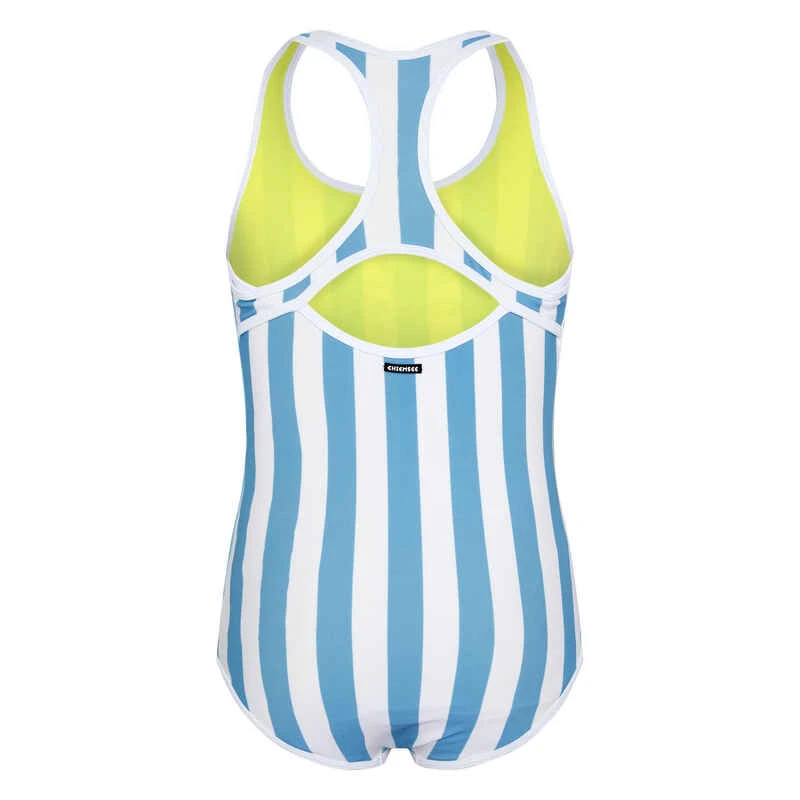 Schwimmbegeisterte Mini-Ladies werden den sportiven Badeanzug von CHIEMSEE für seine tollen Streifen lieben. Das Markenlogo setzt vorn einen hübschen Akzent. Dank des coolen Ringerrückens sitzt der trendige Einteiler bequem und sicher und bietet so viel Bewegungsfreiheit für Aktivitäten im Wasser und am Strand. Der elastische Materialmix fühlt sich toll auf der Haut an. Ob beim Schwimmen oder beim Spielen am Strand im Badeanzug von CHIEMSEE steht dem Spaß nichts im Wege!