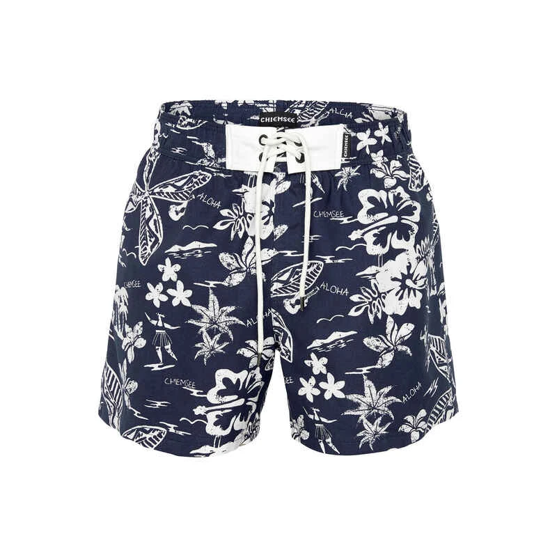 Aloha! Jetzt wird es modisch am Beach, denn die Badeshorts von CHIEMSEE begeistern mit einem trendigen Hawaii-Look, der ganz sicher bewundernde Blicke auf sich zieht. Die seitlichen Eingrifftaschen und die aufgesetzte Pattentasche mit Klett hinten sind praktische Details und bieten Stauraum für Sunblocker und Sonnenbrille. Der elastische Bund der Badehose ist mit einer Außenkordel regulierbar und bietet so bestmöglichen Komfort.