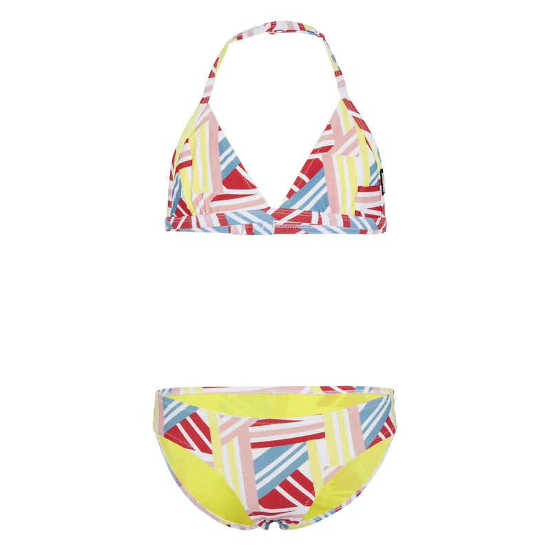 Wenn sich deine Tochter im Sommer oder im Urlaub endlich wieder auf das heiß geliebte Surfbrett schwingt oder einfach nur faulenzen will, ist sie mit dem gemusterten Triangel-Bikini von CHIEMSEE eine ganz heiße Anwärterin auf den Titel der coolsten Badenixe. Dieser überzeugt mit angenehmen und verstellbaren Unterbrustband und Neckholder-Trägern.