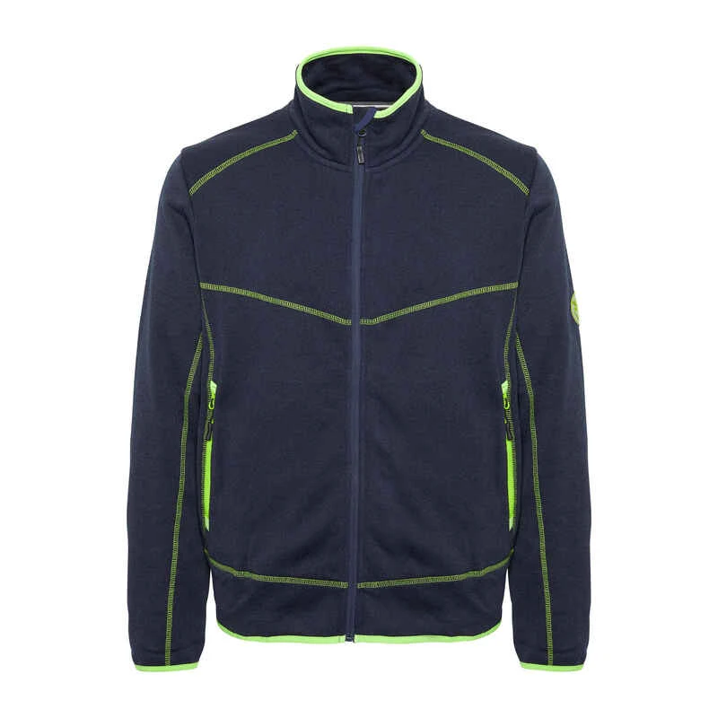 Das Modell zeigt sich im modischen Stil mit kontrastfarbenen Nähten und einem Logo auf der Schulter. Der Stehkragen und die elastischen Kanten an den Saumabschlüssen der bequem geschnittenen Fleecejacke unterstreichen den sportlichen Look. Zwei seitliche Eingrifftaschen mit Reißverschlüssen bieten dir ausreichend Platz für all die Dinge, die du im Alltag griffbereit benötigst. Das sehr elastische Material sorgt dafür, dass auch der Tragekomfort definitiv nicht zu kurz kommt.