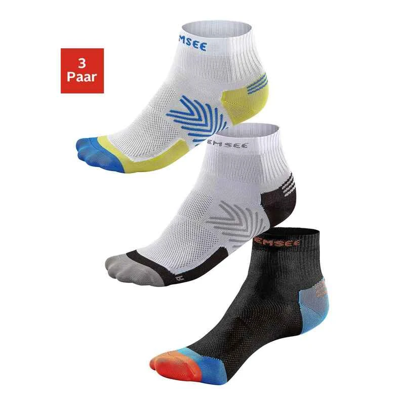 Die „Running“ Socke von Chiemsee! Im 3er Pack erhältlich. Ein elastisches Bündchen garantiert einen perfekten Sitz. Durch flache Nähte und einen breiten Piqué-Strick erreicht die Funktionskurzsocke ihr angenehmes Tragegefühl.