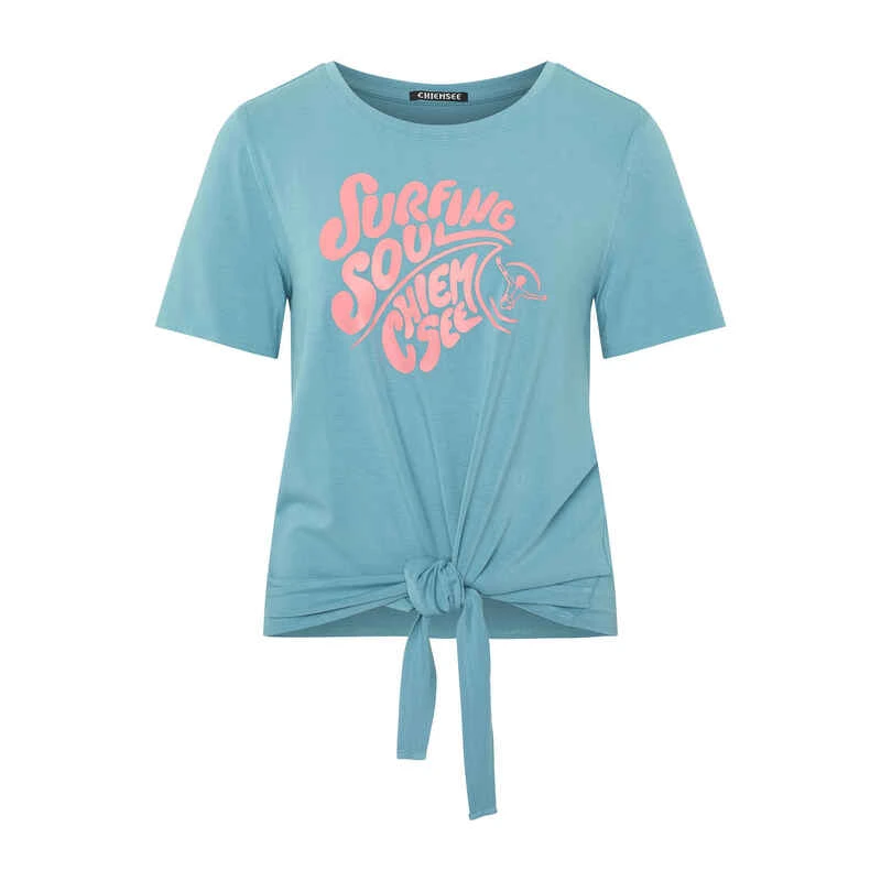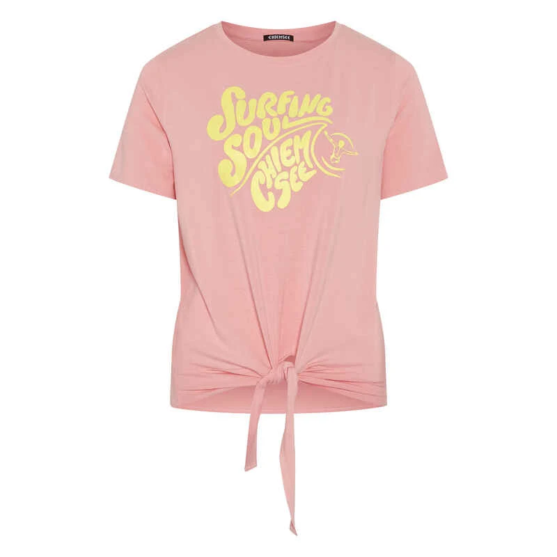 Das extra kurze CHIEMSEE T-Shirt mit Surfer- und Label-Schriftzug hat den Styling-Dreh raus. Denn vorne am Saum überrascht es mit modernem Knoten-Dekor. Dank der soften Mischung aus Viskose und Elasthan ist es zudem herrlich bequem. Mit dem Damen-Shirt hat CHIEMSEE einen lässigen Freizeit-Style kreiert, der mühelos für entspannte Warmwetter-Vibes sorgt.