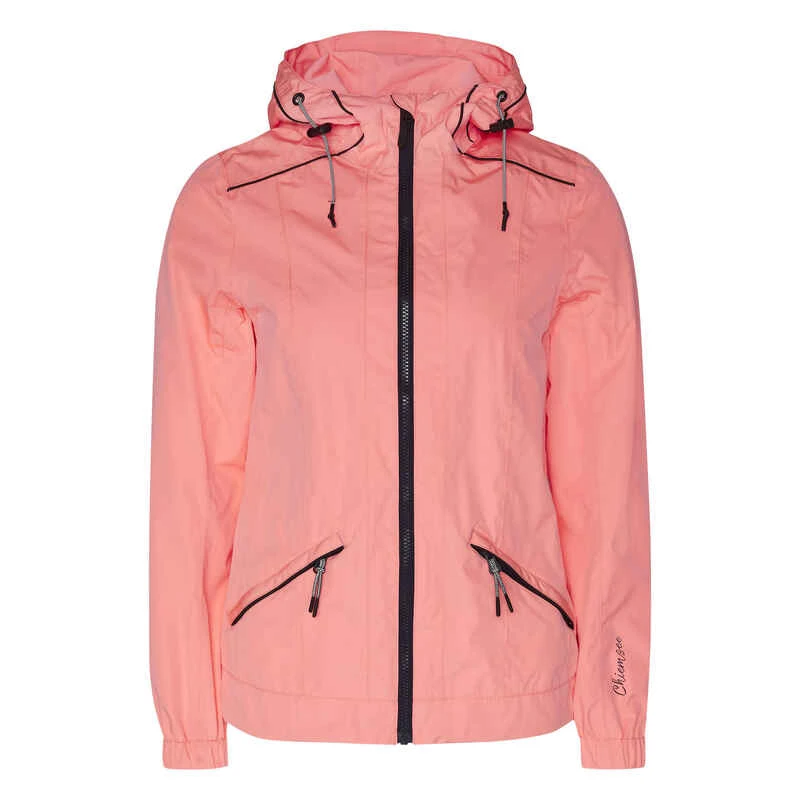 Und Action: Die coole Outdoorjacke von CHIEMSEE rüstet aktive Frauen bestens für Wind und Wetter. Neben den funktionalen Eigenschaften dieser Jacke zieht das sportliche Design in Neonfarbe alle Blicke auf sich. Hoher Kragen und Kapuze wappnen gleich doppelt gegen kühles Wetter. Das hätte natürlich trotzdem keine Chance dank des geklebten Reißverschlusses. Einen optimalen Sitz des Windbreakers gewährleistet der verstellbare Saum und die Kapuze. Die seitlichen Zip-Eingrifftaschen vervollständigen die langärmelige Kapuzenjacke. Ein unkomplizierter Look gelingt mit einer Jeans, Sneakers und der komfortablen Outdoorjacke von CHIEMSEE.