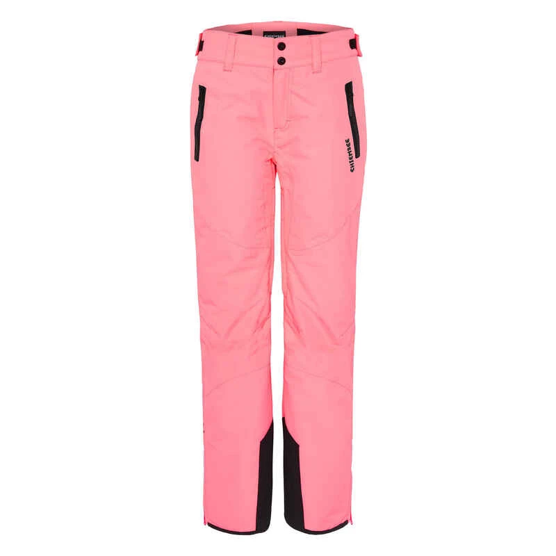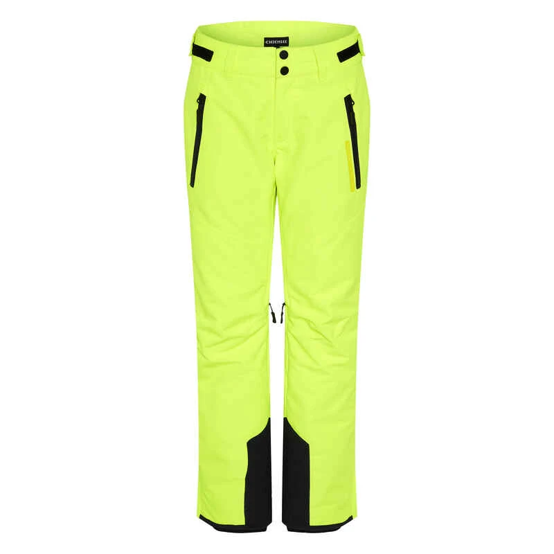 Die enganliegende Damen Skihose von CHIEMSEE präsentiert sich einfarbig mit PlusMinus-Design am hinteren Beinsaum als ultrapraktisch. Mit der 10 000 mm Wassersäule ist die Sporthose absolut wasserdicht, winddicht und atmungsaktiv. Neben dem mit Klett regulierbaren Gürtelschlaufenbund hat die Wintersporthose Reißverschluss-Fronttaschen, eine ergonomische Schnittführung am Knie für Bewegungsfreiheit und Ventings auf der Beininnenseite zu bieten.