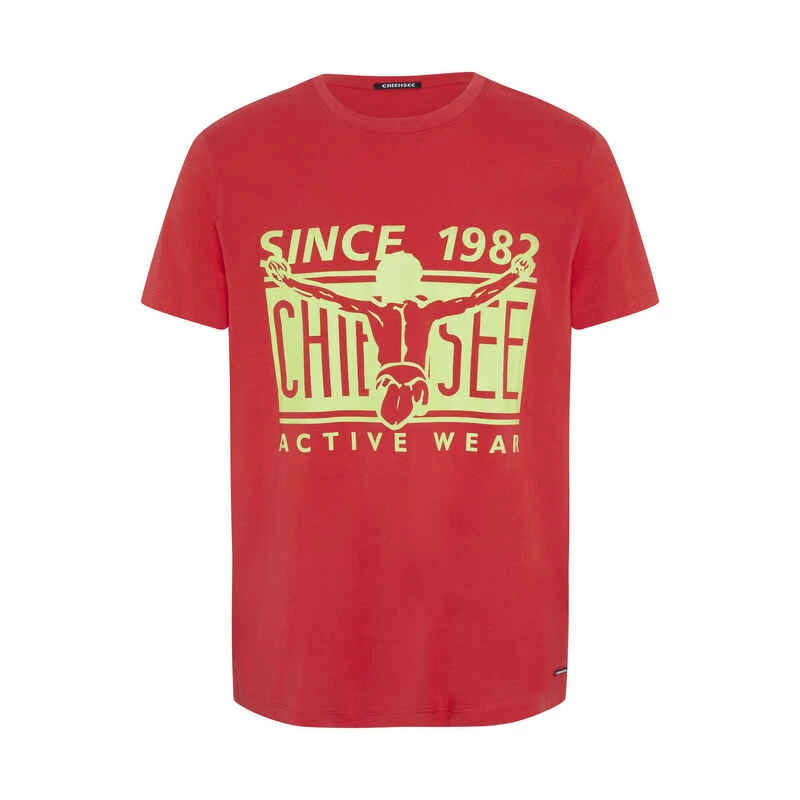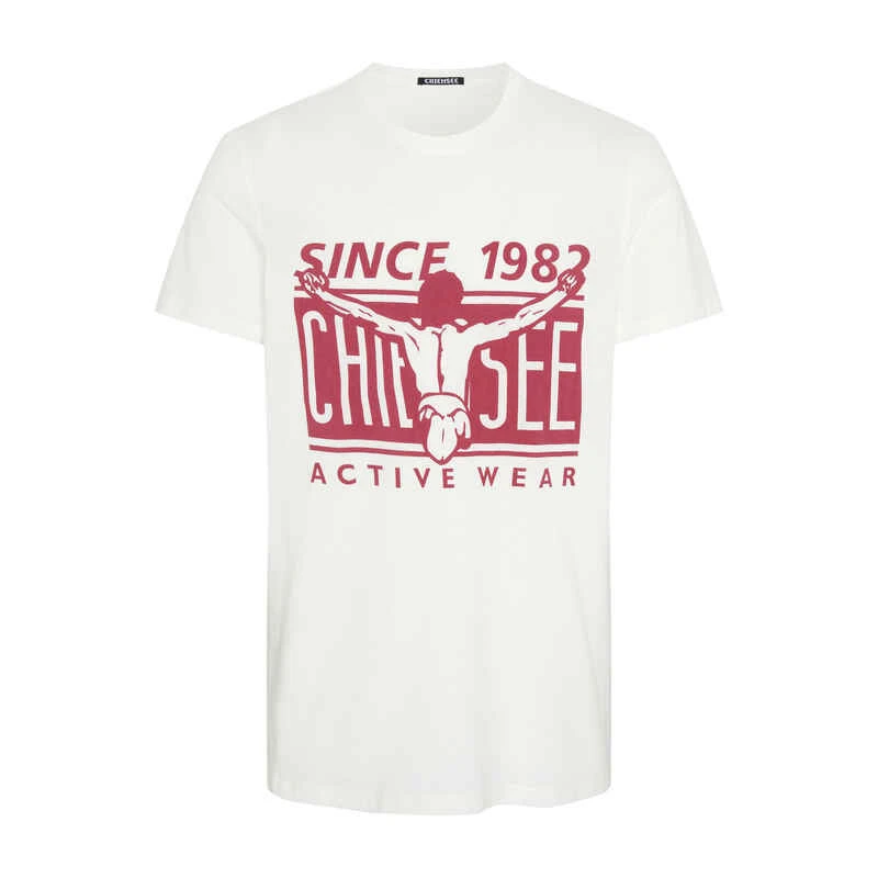 Mit seiner plakativen Vorderseite erregt das T-Shirt von CHIEMSEE Aufsehen. Das CHIEMSEE-Logo präsentiert sich im auffälligen Design auf der Front. Dieses liefert einen tollen Kontrast zum unifarbenen Design des Shirts. Als typische Features statten der Rundhalsausschnitt und die kurzen Ärmel das Logoshirt aus. Ein gut sitzendes Basic-Shirt mit auffälliger Vorderseite: das T-Shirt von CHIEMSEE.