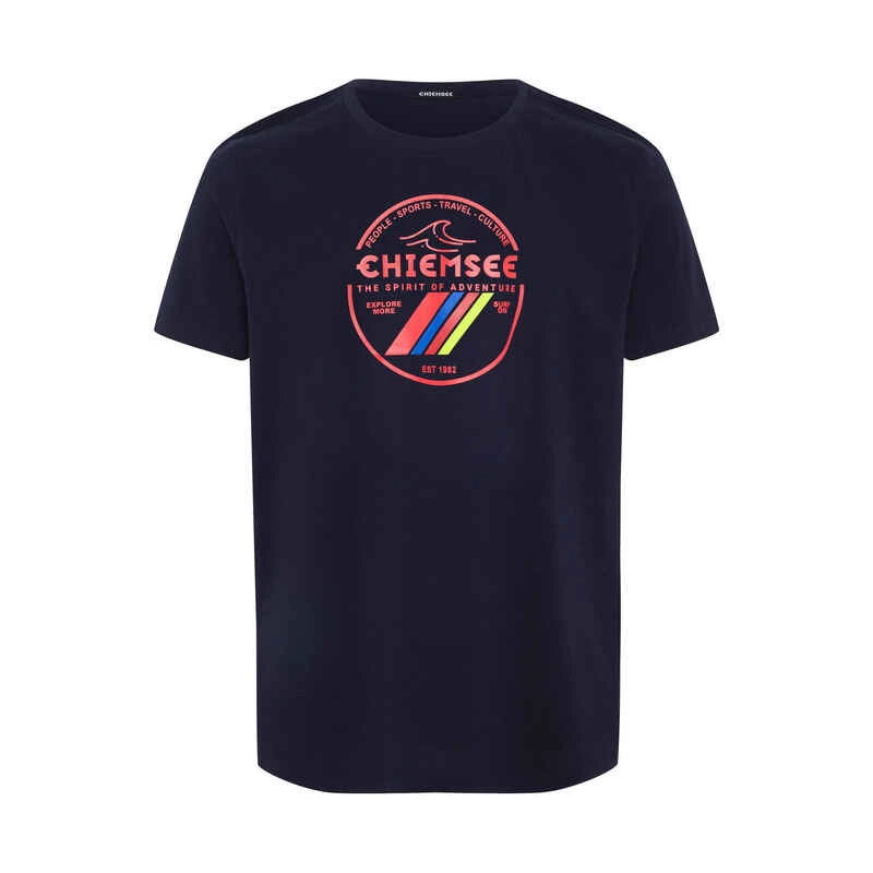 Cosy und easy: Das lässig geschnittene CHIEMSEE Herren-Baumwollshirt versetzt mühelos in Surf-Mood. Dafür sorgt der Label-Print mit Schriftzügen, Wellen- und Kreismotiv an der Vorderseite. Zudem hat es Grüner Knopf und Made in Green Zertifizierungen. Falls du auf der Suche nach einem zeitgemäßen Sommer-Shirt bist, hast du es mit dieser CHIEMSEE Interpretation gefunden.