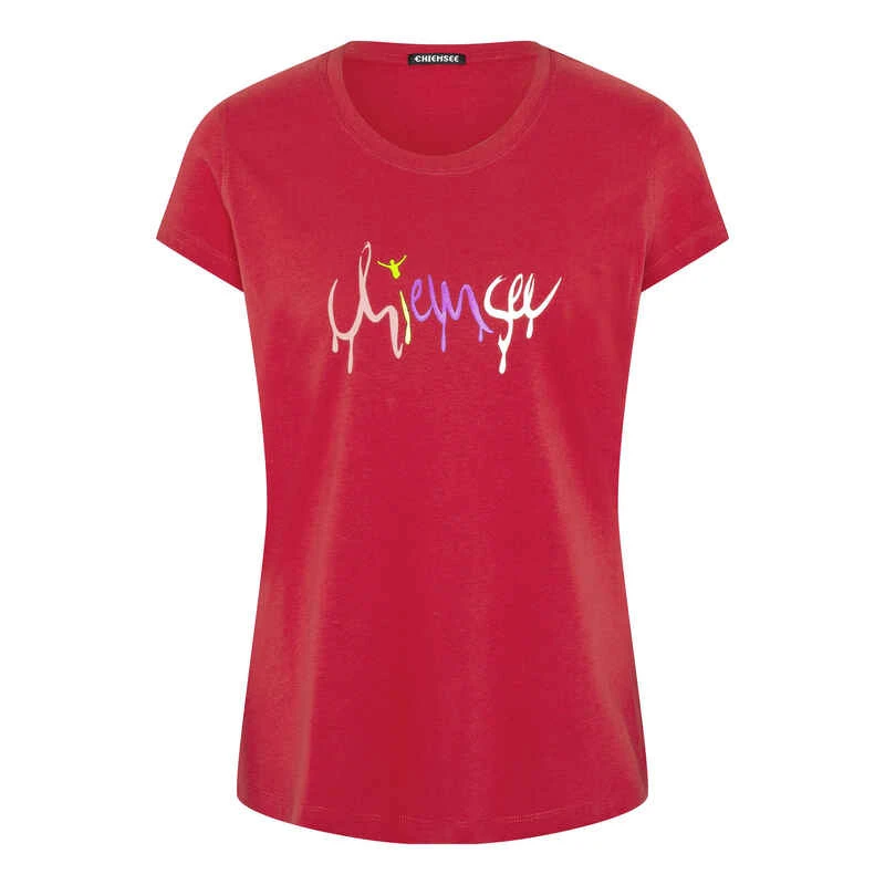 Cool und absolut stylisch kommt das T-Shirt von CHIEMSEE daher. Der bunte Schriftzug vorn macht das normal geschnittene Damenshirt zum absoluten Hingucker. Schön bequem wird das Printshirt durch seine weiche Jerseyqualität. Zu einer lockeren Stoffhose oder knackigen Shorts kombiniert, geht es mit dem Top an den Strand. Das T-Shirt von CHIEMEE überzeugt als tolles Basic.