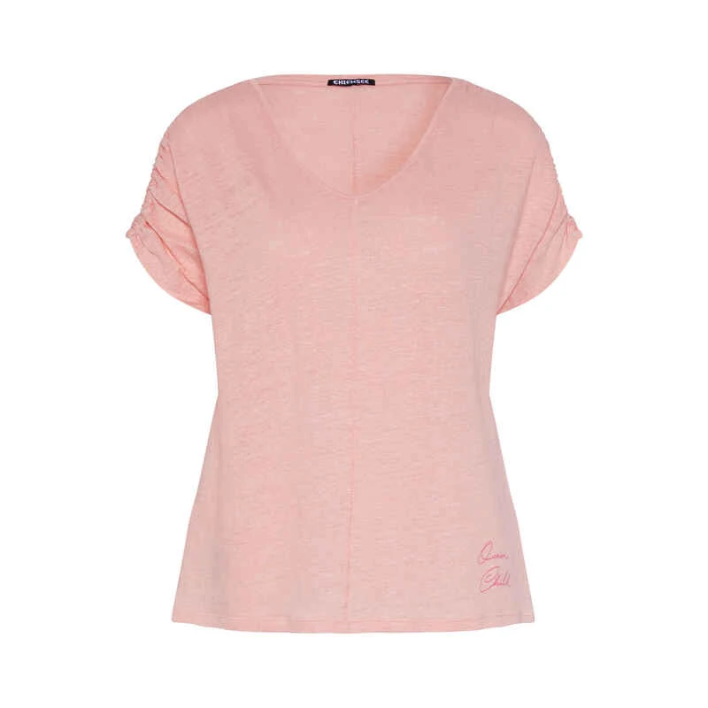 Leger und trotzdem mit dem gewissen Etwas. So sieht dieses CHIEMSEE Damenshirt aus reinem Leinen aus. Betont lässig ist der Schnitt des Shirts mit den überschnittenen Schultern und geraffter Mittelnaht an den Ärmlen. Das gibt dem Shirt einen eleganten und zugleich sommerlich-leichten Charakter. Reines Leinen markiert ebenfalls als typisches Material für den Sommer den Anspruch an kühlende Frische und angenehme Leichtigkeit. Besser kann Frau nicht in die Sommersaison starten…