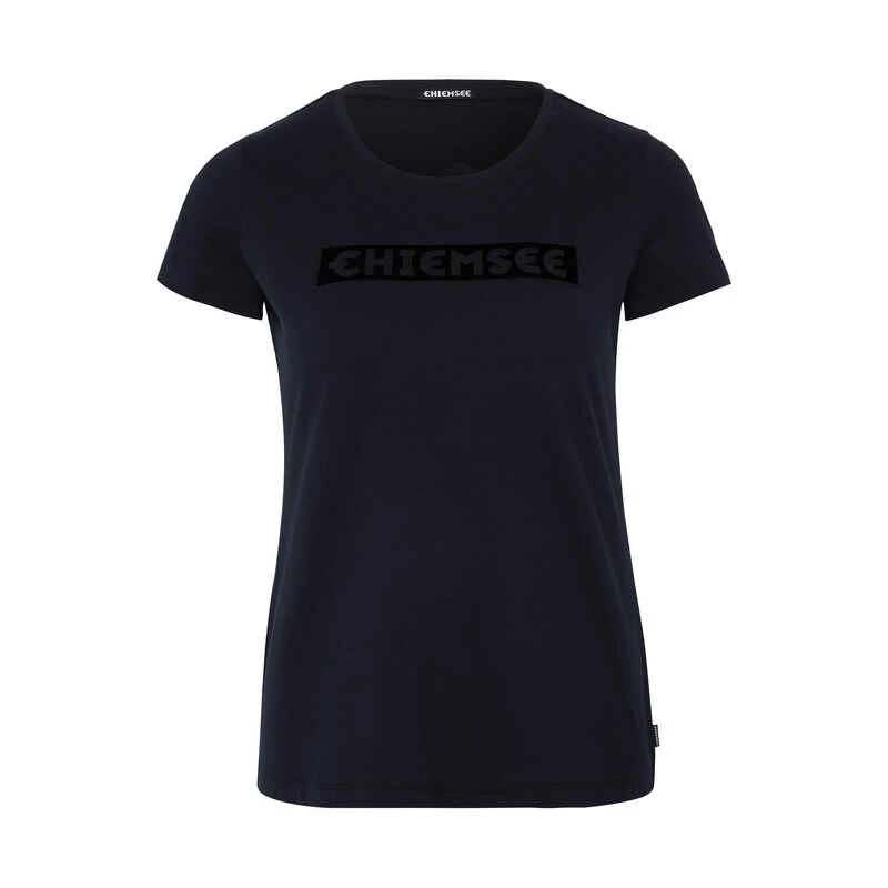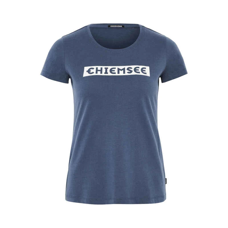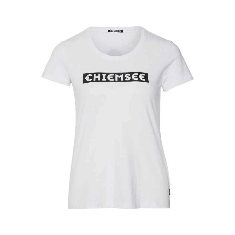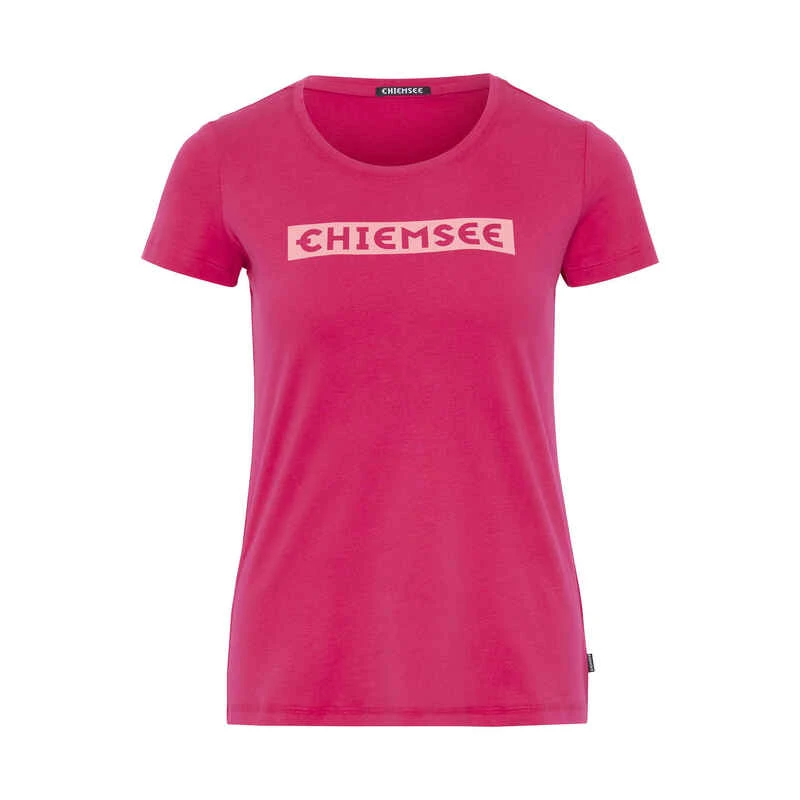 Der Logoprint auf der Vorderseite dieses T-Shirts setzt in der Freizeitgarderobe einen auffälligen Akzent, zum Beispiel gepaart mit Jeans oder Leggins. Der bequeme Stoff und die feminine Passform machen dieses Kurzarmhemd von CHIEMSEE zu einem vielseitigen und bequemen Begleiter. Die Rückseite dieses schönen Kleidungsstücks mit abgerundetem Hals ist schlicht und einfarbig.