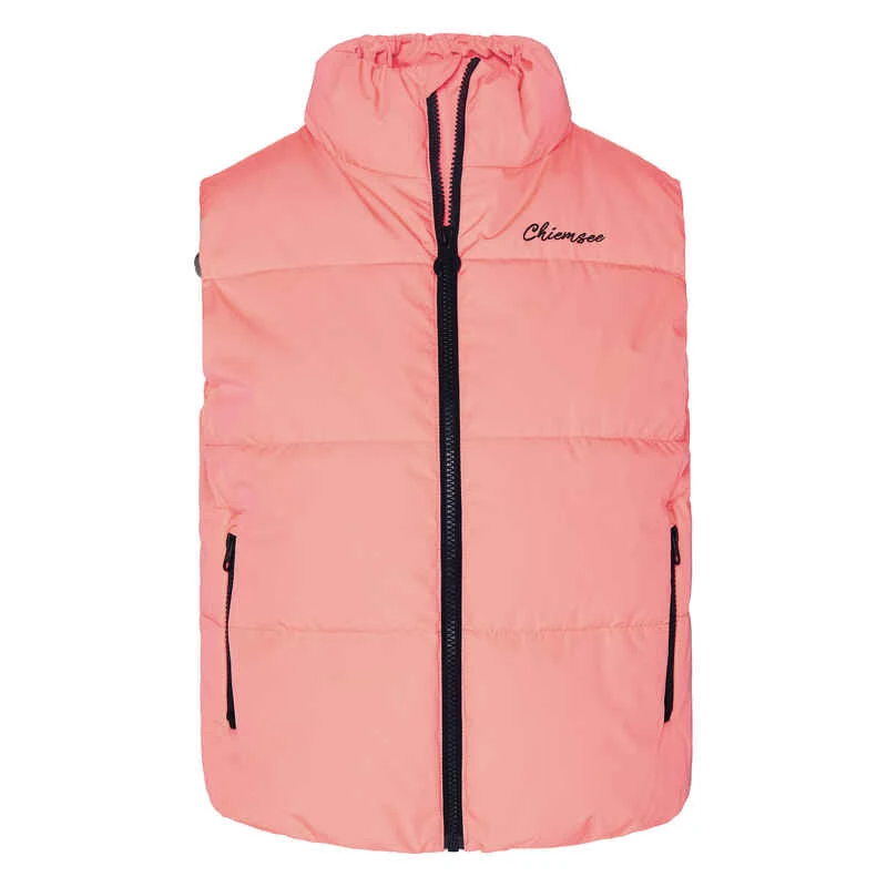 Die klassische Steppweste im CHIEMSEE Look präsentiert sich als idealer Begleiter für die Übergangszeit und kühlere Tage. Die körpernahe Schnittführung, das leichte, warme Innenmaterial und das Stepp-Design garantieren uneingeschränkte Bewegungsfreiheit und überragenden Tragekomfort. In den zwei seitlichen Taschen mit Reißverschluss kannst du kleinere Accessoires sicher verstauen. Das überschnittene Retro-Logoband an den Seiten und das unaufdringliche Weiß oder Pink runden die Weste von CHIEMSEE perfekt ab.